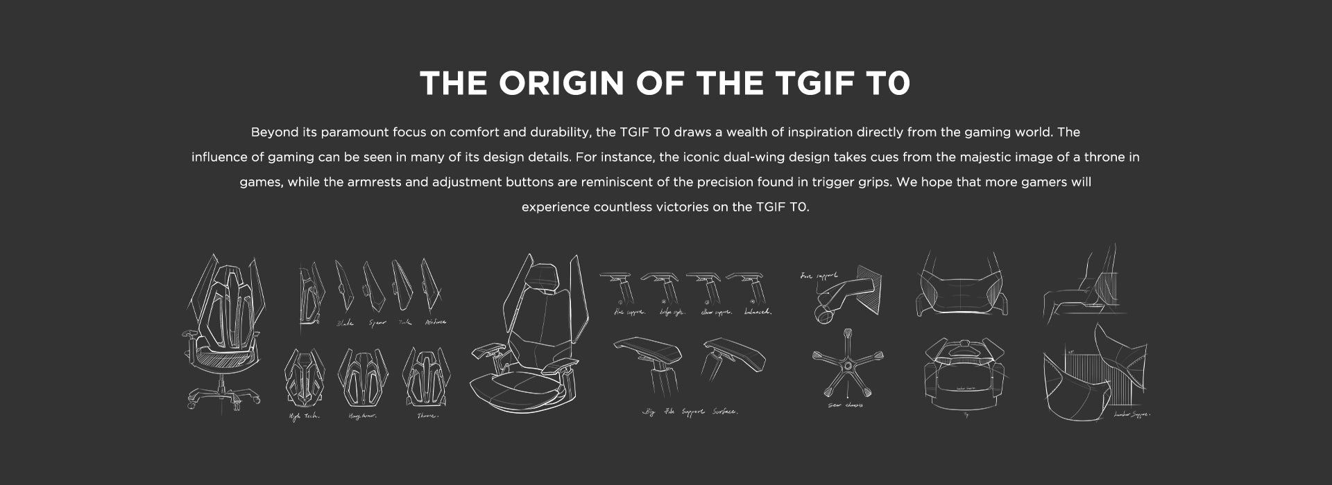 Armed with these insights, we developed the TGIF T0—the world’s first gaming chair featuring our patented Dynamic Seat-Back Sync chassis. This technology adapts to your body’s movements and supports your lower back, making it ideal for medium to large-sized individuals, gamers, and anyone who spends long hours seated.