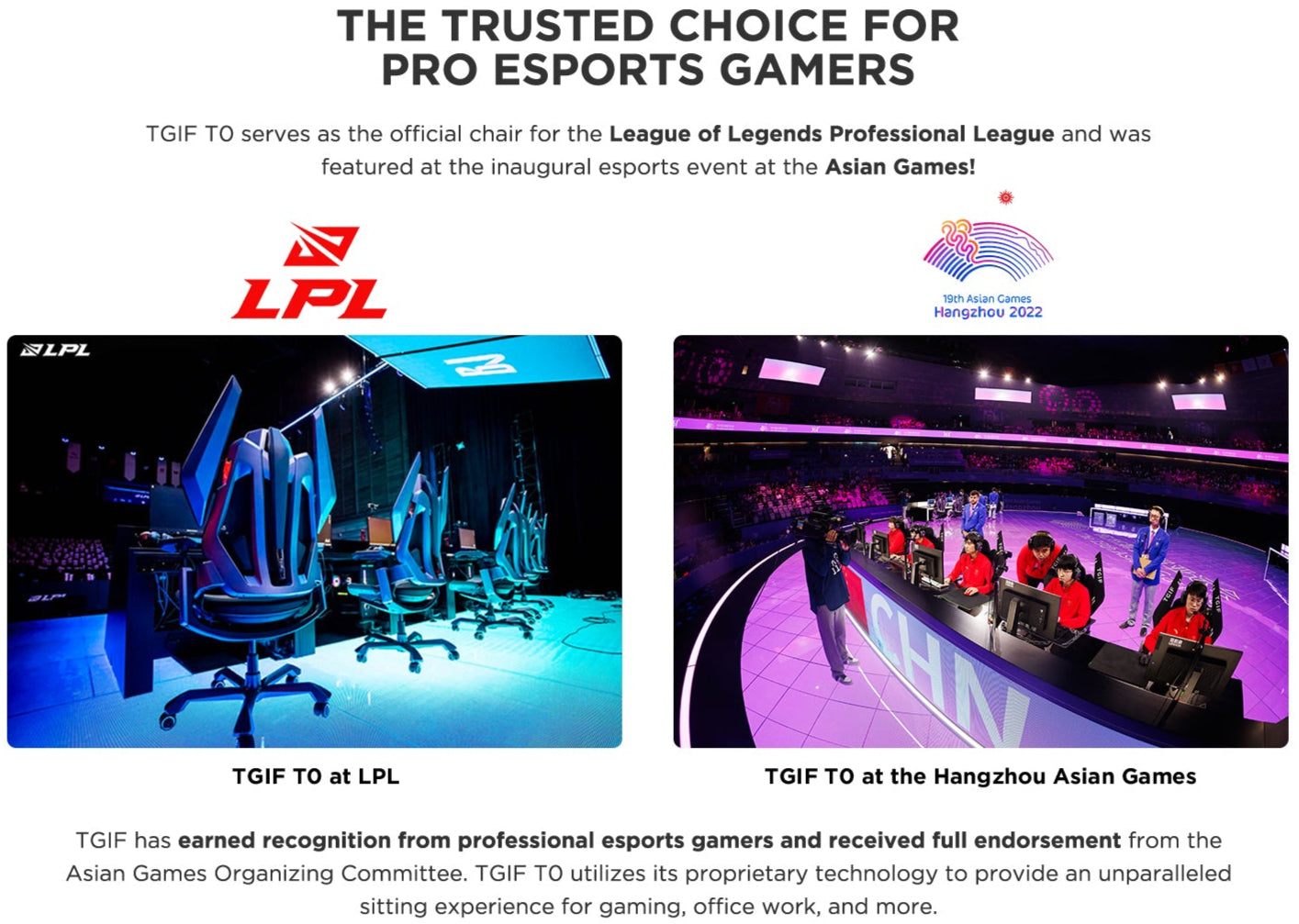 We’re thrilled to share that before the official launch, pro players who tested the TGIF T0 gave it resounding approval. Today, it’s the preferred choice of several esports teams and is even the official chair for the League of Legends Pro League.