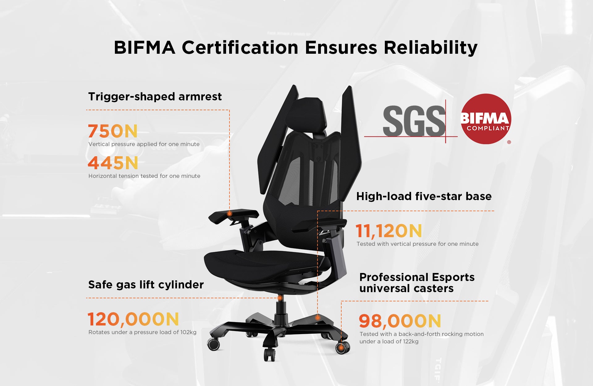 Certified by BIFMA for safety and durability, the TGIF T0 supports up to 150 kg (330 lbs) comfortably.